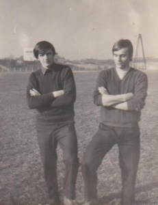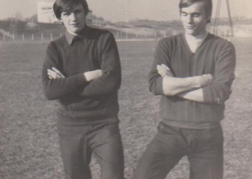 Na zdjęciu sprzed lat. Dwaj uczestnicy tamtego pamiętnego finału. Bogdan Wrzesiński (z prawej) i Andrzej Gronek na boisku dawnego TGW Debe. Autorem zdjęcia był przedwcześnie zmarły Andrzej (Glipser) Szyszkowski.