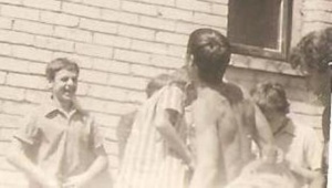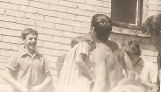Na tym złej jakości zdjęciu, w tle ceglany mur remizy OSP Łajski. Na pierwszym planie przodem Wiesław MULEN Fluks – w początkach lat 70. podpora obrony Santosu. Natomiast w środku zdjęcia stojący tyłem posiadacz bujnej czarnej czupryny to –uwierzcie na słowo- Andrzej Słupecki. Dla kolegów – „Cygan”.